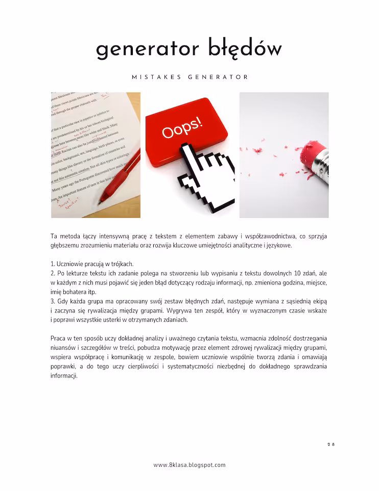 aż 30 różnych pomysłów na pracę z tekstem, dzięki czemu co tydzień możesz zaskakiwać uczniów nowym typem zadania,
